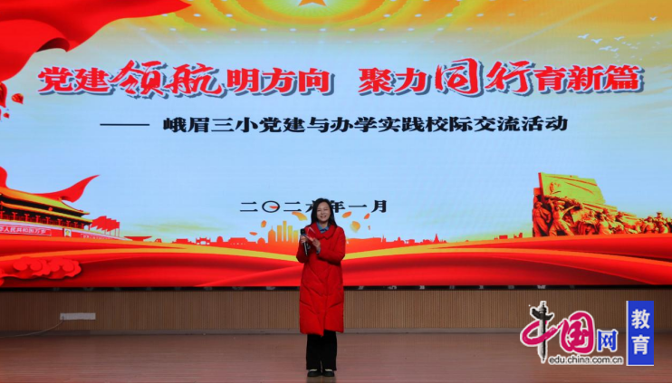 雪映峨眉花枝俏,风拂嘉州春将到。为深化党建引领教育教学高质量发展的实践探索,1月30日,峨眉山市第三小学校在星光剧场举行主题为“党建领航明方向,聚力同行育新篇”的党建与办学实践校际交流活动。本次活动由教师发展中心李智慧主持。