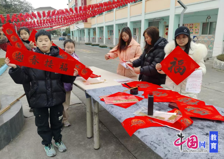 为传承中华优秀传统文化,营造欢乐祥和的节日氛围,近日,绵阳市安州区迎新小学以“墨香迎新春 福字暖校园”为主题,开展了迎新春写春联、送“福”字活动。师生共同参与活动,将节日的祝福与文化的韵味传递至校园内外。