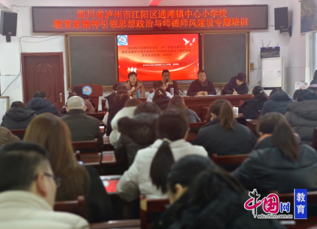 江阳区通滩镇中心小学校以“构建有学习力的教师队伍”为抓手,率先启动“学习教育家精神引领思想政治与师德师风建设”专题培训。活动中,该校全体教职工重温教育家们“捧着一颗心来,不带半根草去”的奉献情怀,深入学习新时代教育家精神的核心要义与实践路径,结合学校“崇德、乐学、善思、慎行”的校训精神,开展“我心中的教育家”主题研讨。全国模范教师代表分享育人初心与成长历程,引导教师们将教育家精神融入日常教学,把思想政治建设与师德修养深度融合,自觉践行“为党育人、为国育才”的神圣使命,着力打造政治素质过硬、育人信念坚定的乡村教师队伍。