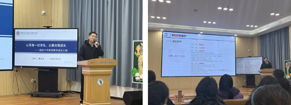 随后,曹玉贤专家带来《心系每一位学生,以微光筑成长》专题讲座。讲座以教育初心为内核,分享浸润式育人的宝贵经验,引发全场深度共鸣。曹老师结合十余年一线教学实践,围绕教师专业成长、班级精细化管理、家校协同育人三大板块,倾囊相授实用策略,从端正职业心态、深耕教学本领,到搭建高效沟通桥梁,为老师们破解工作难题、明晰成长方向,提供了清晰思路与可落地的实操方法。