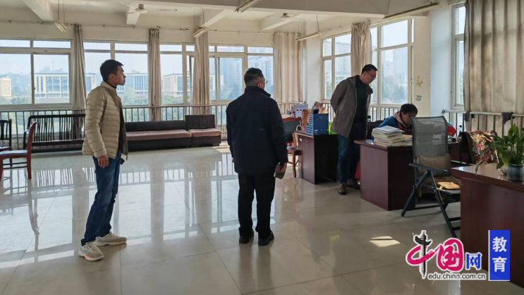 第三组由校长胡飞扬带队对办公室和教室进行检查。在办公室,检查教师办公环境、设备使用和资料整理等情况;在教室,查看教学设备关闭情况、课桌椅摆放以及卫生清洁等,为新学期的教学工作做好准备。