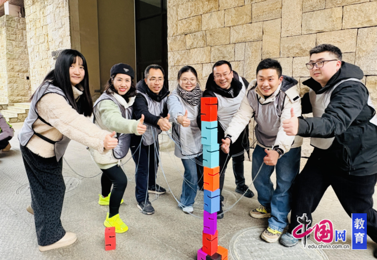 下午,培训转为户外拓展训练。在专业教练的带领下,班主任团队完成“超级过山车”的拓展项目。活动中,各团队利用有限道具(PVC管、胶带、轨道配件等),共同搭建连续、完整的过山车轨道,让小球按预设路线完成全程滑行,老师们齐心协作、彼此依托,深刻体验了非语言沟通、问题解决、领导力执行与团队信任的重要性,在挑战中凝聚了团队精神、提升了协作效能。