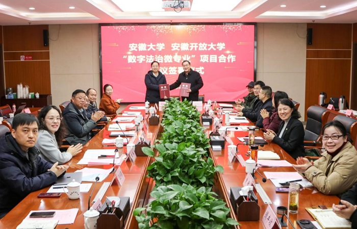 2月2日上午,安徽大学与安徽开放大学共同签署“数字法治微专业”项目合作协议。此次合作共建,是双方立足服务全面依法治国与数字中国建设战略、携手优化区域终身学习公共服务供给的一项创新性实践,共同探索法学教育适配数字时代的高效新路径,快速衔接数字经济与法治建设的复合型人才需求。