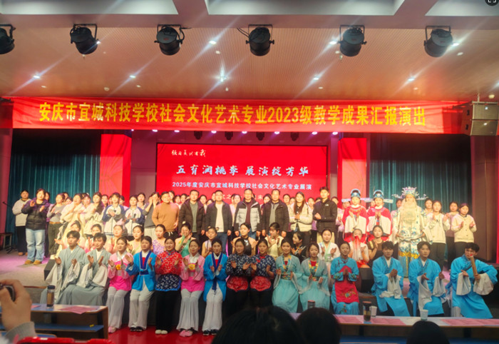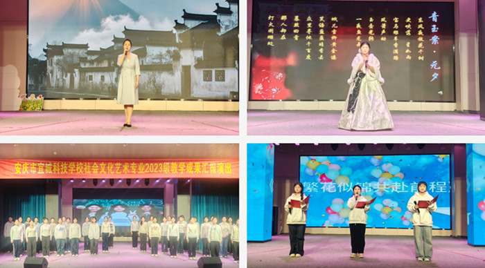 近日,安庆市宜城科技学校社会文化艺术专业2023级教学成果汇报演出在校园内精彩上演。本次演出以“五育润桃李展演绽芳华”为主题,全面展示了该专业学子在舞蹈、戏曲、声乐、表演等领域的学习成果,为全校师生呈现了一场兼具专业性与观赏性的艺术盛宴。