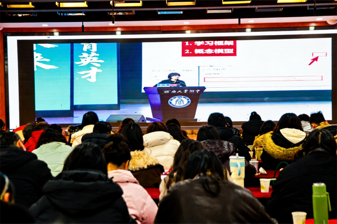 近日,重庆市北碚区2026年寒假教师全员培训“数智赋能:育见北碚教育新生态”拉开帷幕。北碚区状元小学全体教师齐聚学校多功能厅,以饱满的热情投身学习中。培训开场,北碚区委教育工委委员、区教委总督学彭建立强调,全体教师要主动更新观念、深度参与学习、勇于探索实践,点明了本次培训的重要意义与目标。