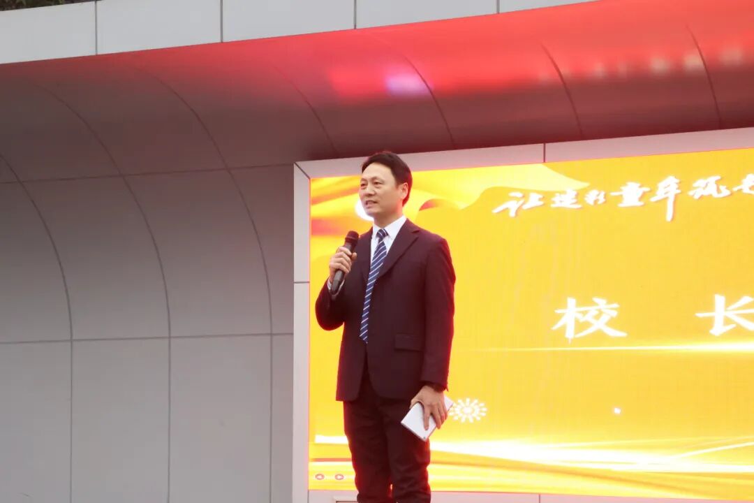 升旗仪式后,学校党总支副书记、校长刘奇发表热情洋溢的讲话。
