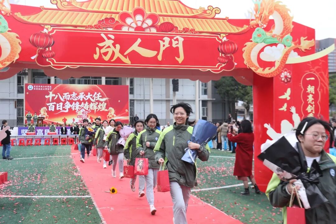 十八而志承大任,百日争锋铸辉煌。愿两江中学2026届高三学子,以成年之姿勇担时代使命,脚踏实地、奋勇争先,以梦为马、不负韶华,在六月高考中绽放锋芒,在人生征途上续写华章!