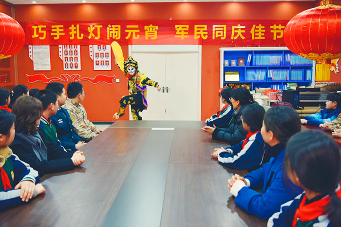 活动中,官兵、老师与学生共同制作花灯、包元宵,在动手实践中感受传统民俗,共叙军民鱼水情。文艺环节,歌曲《正月十五是元宵》欢快喜庆,退役军人周瑶瑶带来的变脸表演精彩绝伦,赢得阵阵掌声。