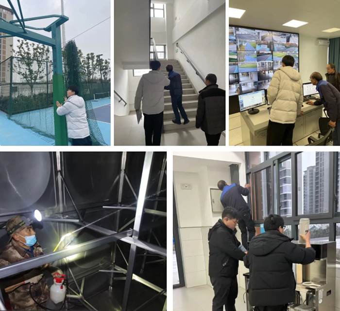 教学楼是学生在校期间活动的主要场所,其安全细节直接关系到学生的人身安全。总务处逐层逐室开展细致排查,对教室、走廊护栏、门窗、教学设备、功能设备等进行全面检查;其次对各楼层饮水机滤芯更换水质检测、生活水箱清洗消毒、电梯设备维保、校园道路、照明灯具运行情况、学校电力系统、体育设施等进行全面排查,及时消除安全隐患,为学生营造安全、舒适的学习生活环境。