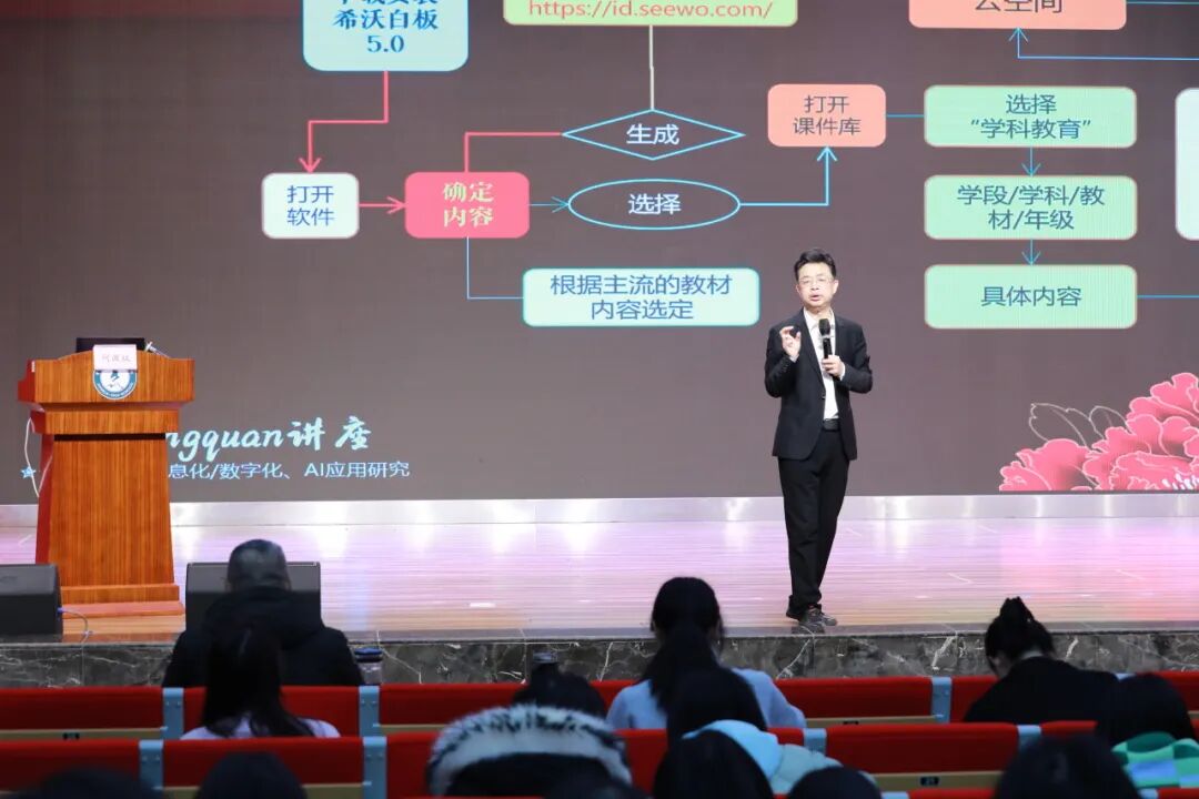 为深入贯彻落实国家教育数字化战略部署,积极推进人工智能与教育教学深度融合,全面提升教师数字素养与专业发展水平,2026年3月3日上午,重庆市锦华学校开展了人工智能赋能教师专业发展专题培训。本次培训特邀中国电子学会现代教育技术分会智库资深专家、重庆市教育信息化专家何政权担任主讲,聚焦教育数字化转型核心需求,以专业引领、实践赋能为导向,为全体教师带来一场兼具理论高度、实践深度与应用温度的专业成长盛宴,助力教师拥抱智能时代、革新教学范式、提升育人效能。