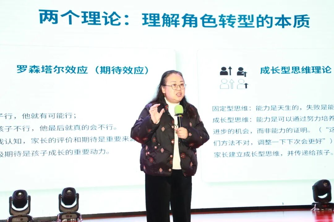麦莉老师结合罗森塔尔效应(期待效应)与成长型思维理论,引导家长重新审视自己的角色定位。她阐释道,“罗森塔尔效应”揭示了一个深刻的道理:父母的期待,往往会在潜移默化中塑造孩子的未来。当家长用积极的眼光看待孩子的潜力,孩子便会朝着这份期待的方向成长。而“成长型思维理论”则告诉家长,与其盯着孩子一时的分数高低,不如引导孩子相信“能力可以通过努力和学习不断发展”——这种思维模式的转变,是帮助孩子从容应对高中“陡坡”与“分水岭”的关键所在。