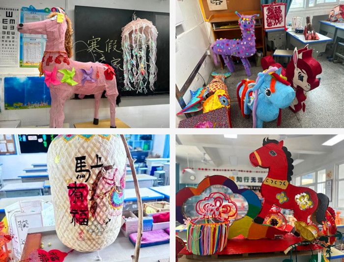 在制作活动中,同学们展现出了令人惊叹的想象力和创造力。他们就像一个个小小的“马良”,将那些在日常生活中看似平凡无奇,甚至被视为废弃的材料,赋予了全新的生命力。从象征“一马当先”的奔马造型,到寓意“马到成功”的吉祥纹样,每一盏花灯都凝聚着孩子们的巧思与对马年的美好期盼。在与家长的协作中,亲子间的默契与温暖,也让传统民俗的传承之路变得更加生动鲜活。
