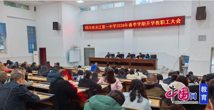 近日,四川省夹江第一中学召开2026年春季学期开学教职工大会。会议由办公室副主任徐梦月主持,全体教职员工参会。会议围绕新学期工作部署、师德师风建设、德育安全管理和教学教研提升等重点内容展开,为新学期各项工作开好局、起好步奠定坚实基础。