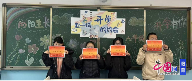 “分班典礼励成长,表扬寄望催奋进。”学校以班级为单位举行了特色开学典礼,班主任为上一学期在学习、技能、品德等方面表现优异的学生颁发“优秀班干部”“劳动之星”“礼仪之星”等荣誉奖状。当孩子们从老师手中接过奖状时,脸上洋溢着自豪与喜悦,这份荣誉不仅是对过去努力的肯定,更成为新学期奋勇前行的动力。老师们还送上了新学期寄语,鼓励大家勇敢尝试、不断进步。