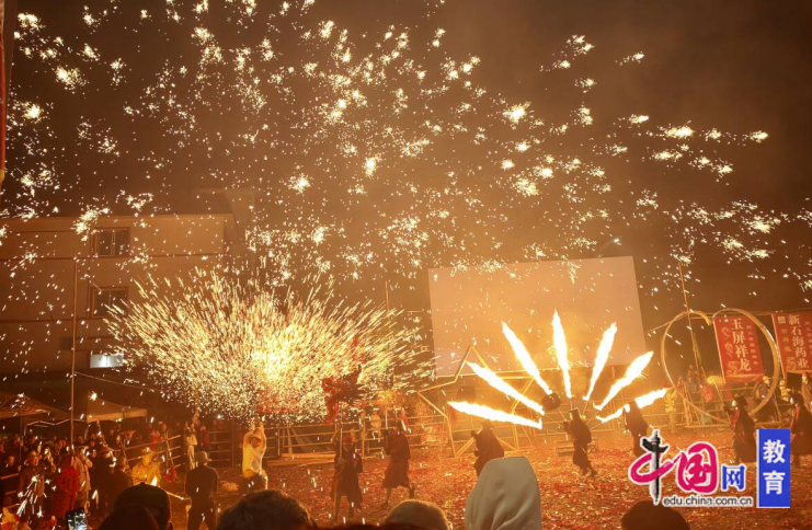 团圆宴后,全体教师一同观赏舞龙灯会,沉浸式体验传统民俗的魅力。璀璨的灯火照亮了老师们的笑脸,点燃了大家新学期的工作热情。