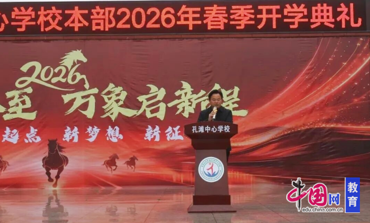 宜宾市翠屏区白花镇孔滩中心学校本部举行了主题为“骐骥迎春至·万象启新程”的2026年春期开学典礼暨开学安全第一课、优秀学生表扬大会。学校党政领导班子成员、教务处、德育处、安全办等处室负责人、全体教职工及七至九年级全体学生参加了本次活动。