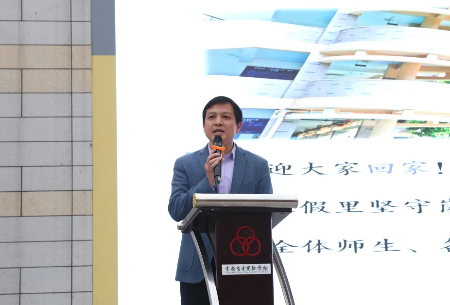 胡书记以 “做五匹有方向、有力量、有技术、有温度、有担当的‘追风马’” 为主题寄语,肯定学校过往育人佳绩,发出 “追家国、健康、科技、文化、心灵” 五风成长邀请,引用《飞驰人生 3》台词寄语师生超越自我,最后带领师生立下誓言一起做“追风马”,跑好新学期每一段路。