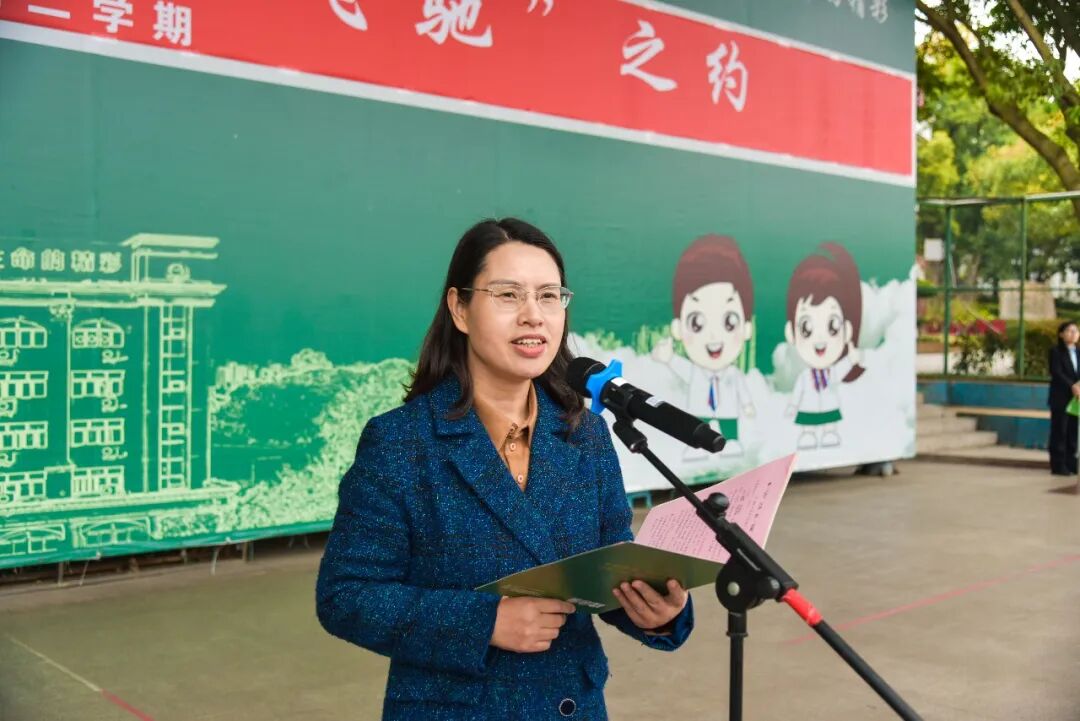 学校党委书记王光毅与党委副书记、校长冉崇娟分别在思源、水土两个校区与全体师生定下春天三重约定。