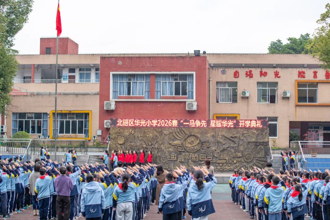 春风绘新章,奋进正当时。重庆市北碚区华光小学以“一马争先 星耀华光”为主题,隆重举行 2025-2026 学年第二学期开学典礼,同步启动 “寻雷锋足迹 做美德少年” 学雷锋月活动,开展系列志愿服务。全校师生以昂扬奋进之姿迎接新学期,以躬身实践之行践行雷锋精神,让马年的奋进力量与雷锋的温暖精神,在校园里同频共振、熠熠生辉。