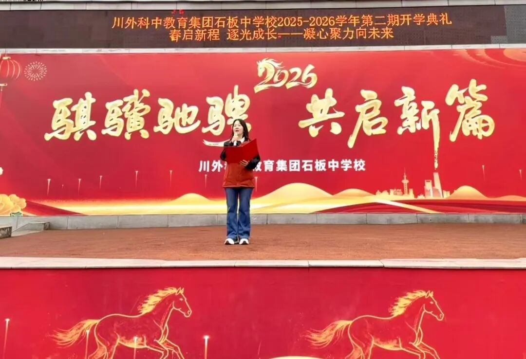 风好正是扬帆日,策马扬鞭向未来。此次春季开学典礼,不仅是一次庄重的仪式,更是一场凝心聚力的动员。新的学期,川外科中教育集团石板中学校全体师生将以“做一粒有力量的种子”为指引,以崭新的姿态、务实的作风,践行“聚石成峰,立身成人”的核心办学理念,深耕智慧教育,共育时代新人,在新的征程上书写石中发展的崭新篇章。