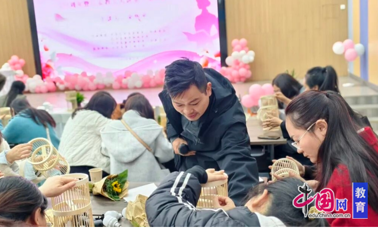 活动中,江安县教育和体育工会联合会主席陈千全为现场女教职工送上鲜花,致以节日问候;江安县妇幼保健院妇女保健部主任邓春霞医生围绕女性常见疾病预防、“两癌筛查”等内容开展女性健康专题讲座,引导女教职工关注自身健康,提升自我保健意识;“汉安工匠”竹编非遗传承人宋怀平现场指导“竹编台灯”制作,让女教职工们在动手实践中感受竹编技艺的独特魅力,沉浸式体验非遗文化。