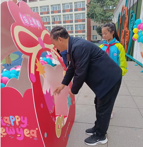一大早,校园里处处弥漫着喜庆与温馨。校门口精心装点的福袋与气球格外醒目,仿佛在向每一位学子诉说着新年的祝福。同学们脸上洋溢着灿烂的笑容,迈着轻快的步伐踏入校园,在满满的仪式感中,开启了崭新的学习之旅。