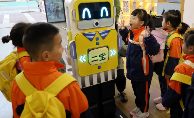 清晨,迎着老师们亲切的问候。小朋友们来到保健老师、智能晨检机器人“大宝”和“二宝”面前进行新学期的第一次健康检查。