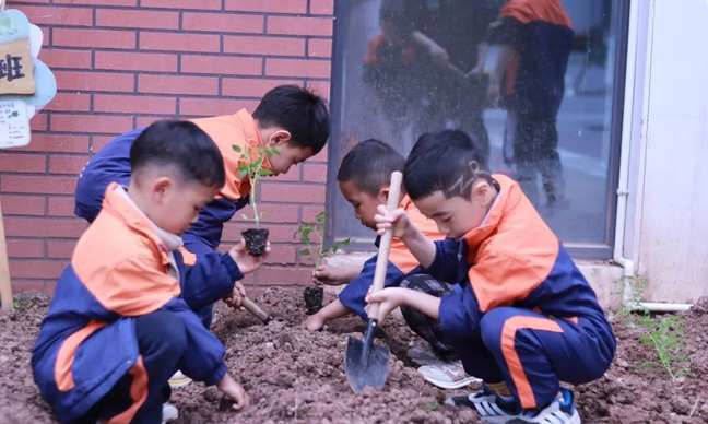 分散环节,孩子们在老师们的带领下,来到班级种植区,亲手“种下春天”。挖坑、播种、浇水……在亲身体验种植劳动的过程中,孩子们不仅锻炼了身体,更真切感悟到生命成长的意义,也为后续的“种植节”活动拉开了序幕。