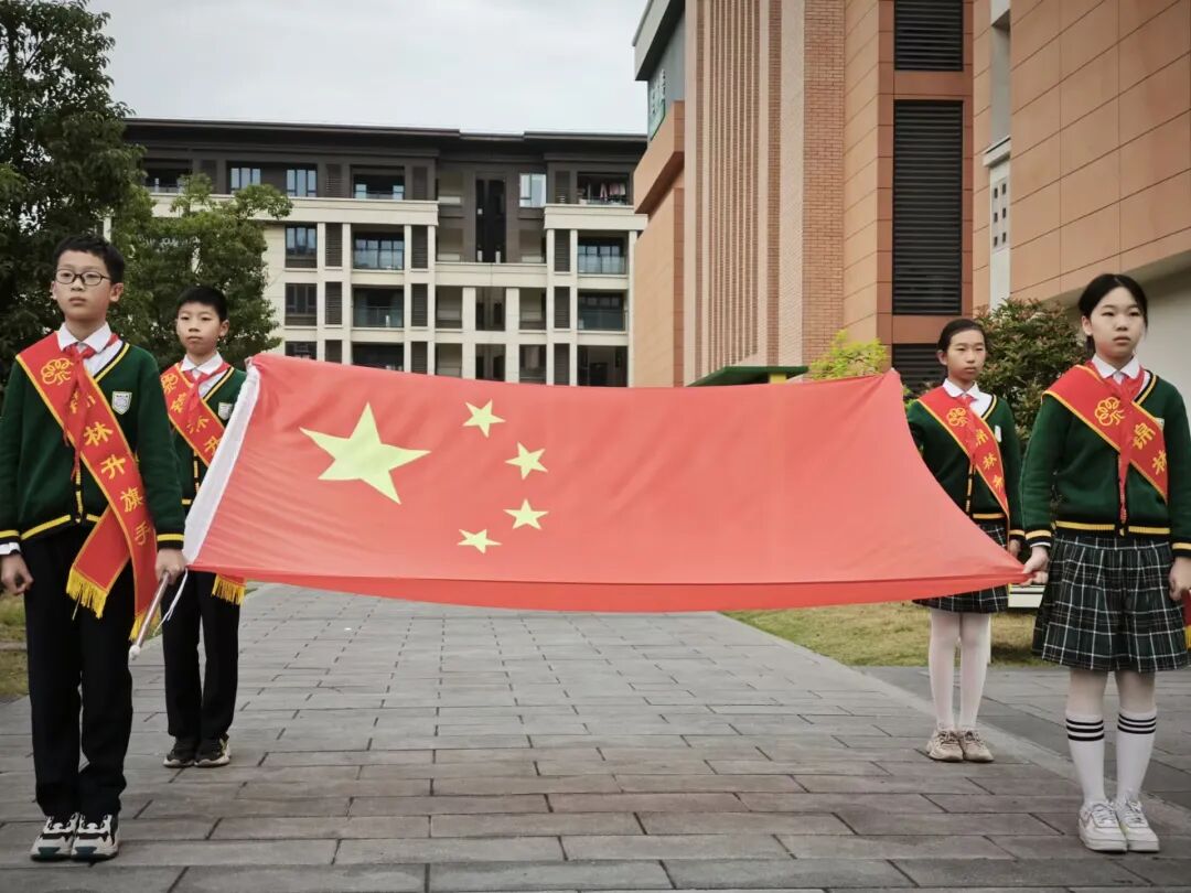 伴随着雄壮的国歌声,五星红旗冉冉升起,少先队员行队礼,其他人员行注目礼,现场氛围庄重而热烈。