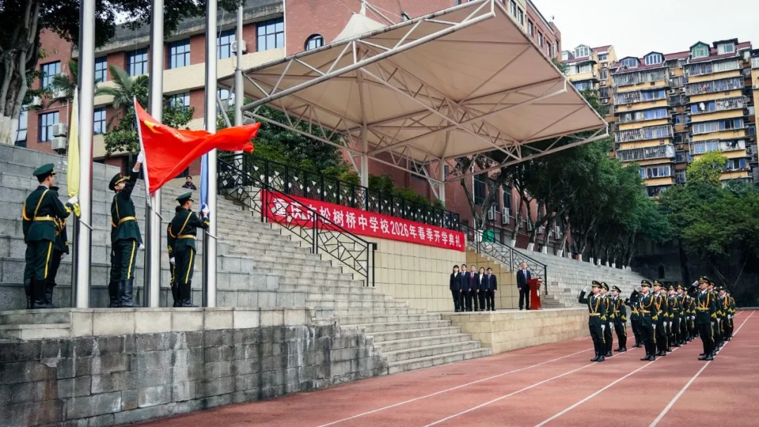 3月5日,阳光铺满绿茵场,重庆市松树桥中学2026年春季开学典礼正式开燥!
