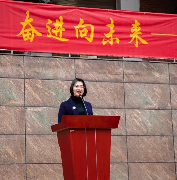 初2023级教师代表魏兰艾老师希望初三学子以“一马当先”之勇、“快马加鞭”的劲头、“龙马精神”的面貌冲刺中考,劝勉初一、初二的同学珍惜时光,夯实基础,养成良好习惯,积蓄“千里马”的潜能,为梦想播下勤奋的种子。