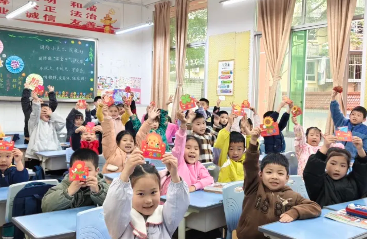 开学报到日,校园暖意与喜悦交织。校门口老师们笑意盈盈迎接返校学子,教室里整洁的桌椅、暖心的布置,让孩子们倍感归属感。趣味开学仪式上,老师们为每位学生送上祝福卡片,字里行间满是期许与鼓励 。