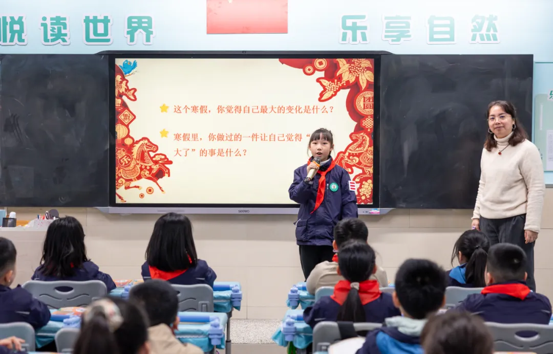开学典礼结束后,学校各班级同步开展新学期开学第一课主题活动。各班以“骐骥启新程笃行向未来”为核心,结合开学典礼精神与班级特色,设计了形式多样的课堂内容:有的班级重温开学典礼中的榜样故事与誓言,引导学生制定个人新学期成长目标;有的班级开展学雷锋主题实践讨论,以点滴善举践行雷锋精神;有的班级围绕“做新时代骐骥少年”展开交流,分享自己对“问号小孩”“暖手小孩”“不怕摔的小孩”的理解与践行计划。课堂上,师生互动热烈,学生积极分享感悟,在交流与思考中快速收心归位,筑牢新学期思想根基,让开学典礼的精神内涵在班级落地生根。