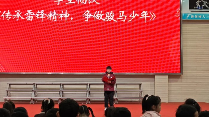 学生代表丁子翔同学随后宣读了《传承雷锋精神,争做骏马少年》倡议书,铿锵誓言响彻场馆:"让我们从身边小事做起,从日常细节践行,让'微光'汇聚,让'炬火'燎原!"青春的宣言,展现了新时代少年昂扬向上的精神风貌。