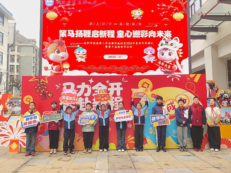 春风送暖,万象更新。为迎接崭新的学期,激发全体师生昂扬向上的精神风貌,合肥市逍遥津小学金都华庭校区隆重举行2026春季“策马扬鞭启新程 童心迎彩向未来”开学典礼暨第十届创意节活动。全体师生欢聚一堂,在仪式感与创意感兼具的氛围中,开启新学期的美好征程。