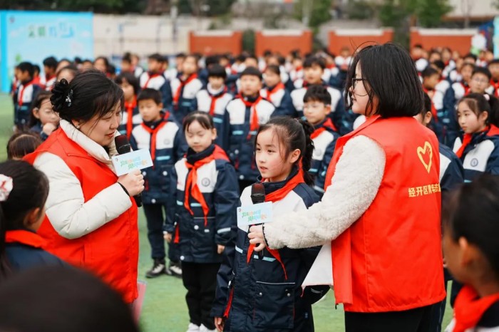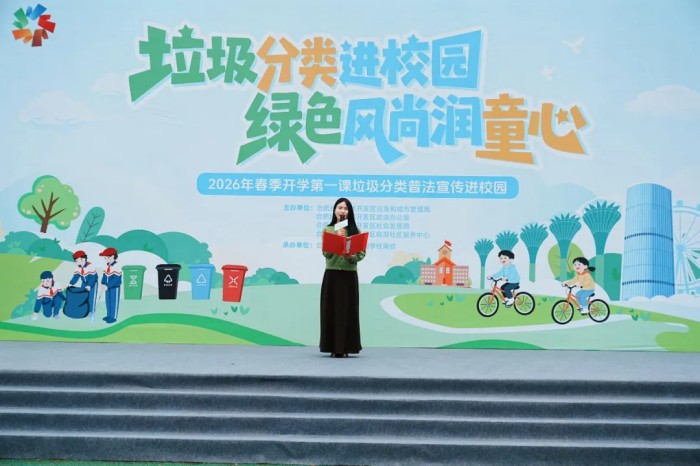 合肥经开区2026年“开学第一课”垃圾分类普法宣传进校园活动在合肥一六八玫瑰园学校南校举行