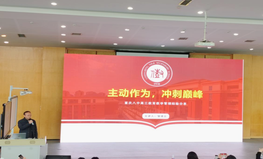 重庆八中邹凌云老师作高三英语二轮复习专题微讲座,从复习规划、重难点突破、心理疏导等方面为与会教师提供系统指导,赢得一致好评。