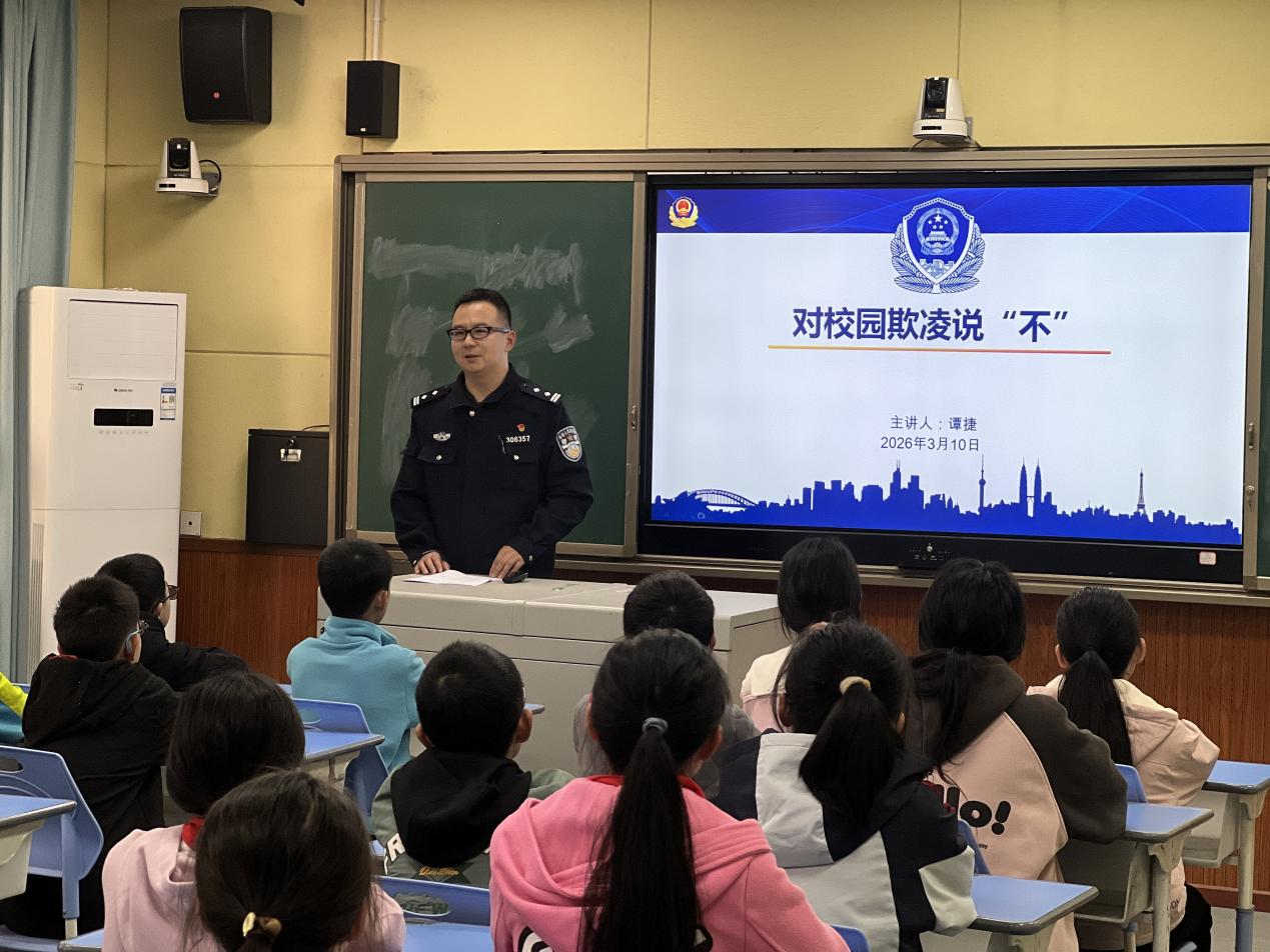 演练结束后,校外法治辅导员谭捷警官为全校师生带来了一场别开生面的防欺凌专题讲座。讲座围绕“认识校园欺凌”这一主题,从认识校园欺凌、欺凌的危害、如何识别欺凌行为、遭遇欺凌该怎么办、如何成为反欺凌小卫士这五个方面层层递进:法制辅导员通过生动形象的案例,向学生们讲解了校园欺凌的定义、四要素以及主要表现形式,包括肢体欺凌、言语欺凌、关系欺凌和网络欺凌,帮助大家分清“玩闹”与“欺凌”的界限。并针对可能遭遇欺凌的情况,辅导员为学生们送上“防欺凌锦囊”:勇敢说“不”、迅速离开、及时求助、调整心态。同时,呼吁旁观者不做冷漠的看客,在确保自身安全的前提下积极帮助受欺凌同学。