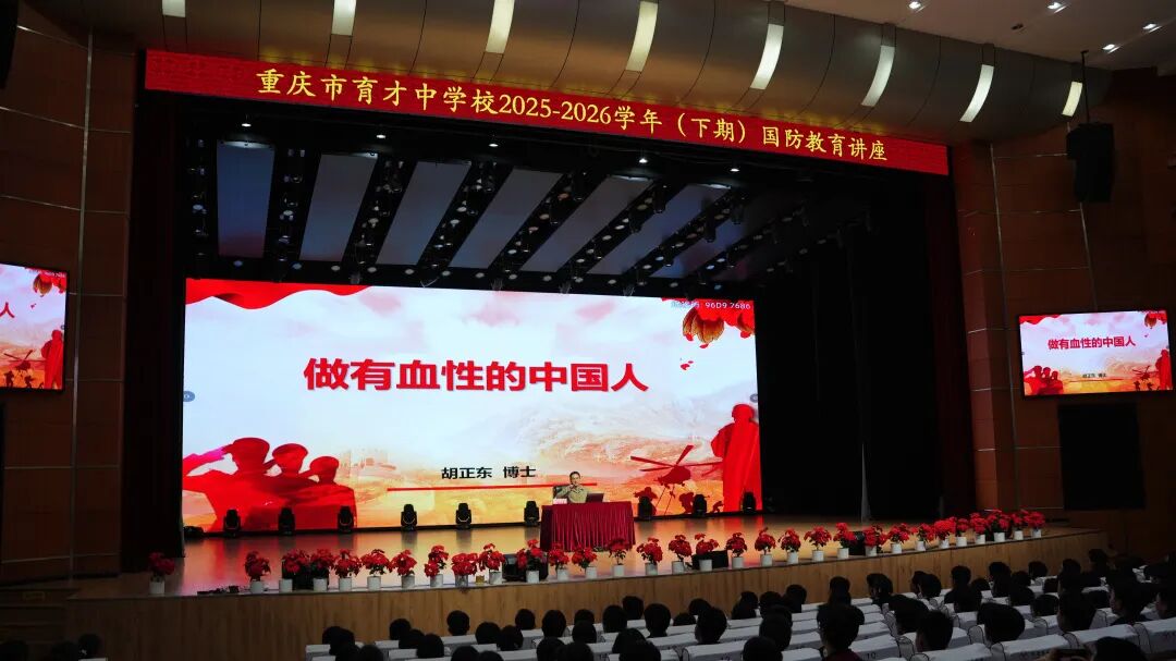 3月9日晚,重庆市育才中学校谢家湾校区演播大厅内掌声如潮,一场以“做有血性的中国人”为主题的国防教育讲座正在这里举行。学校特邀国防教育专家胡正东教授为高2028届全体学子带来一场跨越千年的精神对话。