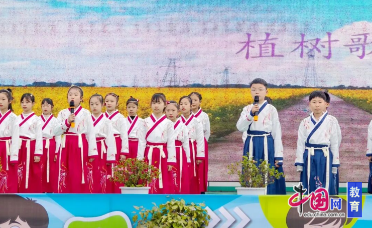 “三月里,好天气;大地醒,万物笑。树发芽,花开笑;植树节已来到。小朋友,手拉手;提水桶,带铁锹。唱着歌,哼着调;上山去,栽树苗。”声情并茂的朗诵,既是同学们对自然之美的歌颂,也是他们对植树行动的倡导,更寄托了同学们像小树一样健康快乐成长的纯真愿望。