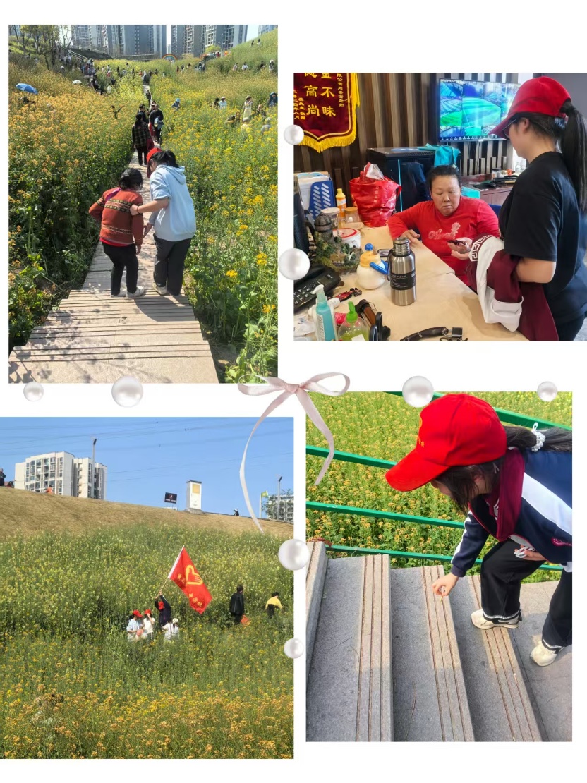 与此同时,另一组志愿者队伍在社区党员同志和学校党员教师的带领下,走进溉澜溪体育公园,开展文明劝导与环境维护志愿服务。12名学生志愿者积极向赏花踏青的市民宣传文明出行理念,倡导爱护花草、不随意践踏绿地,自觉维护公共环境;志愿者们还主动帮助腿脚不便的老人安全上下台阶,以举手之劳传递善意;化身“清洁小卫士”,认真捡拾公园内的纸屑、塑料袋、烟头等垃圾,用实际劳动美化公园环境。途中,志愿者捡到市民遗失的物品,并第一时间送至公园管理处,展现了拾金不昧的良好品质。