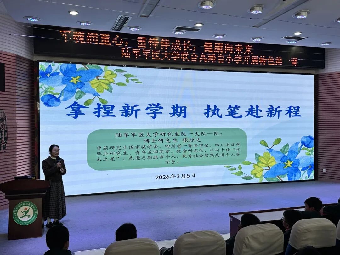新学期的号角已吹响,在学雷锋纪念日来临之际,重庆市沙坪坝区高滩岩小学迎来了一群特别的客人——陆军军医大学研究生院的志愿者们。她们走进校园,为孩子们带来了国防教育、心理健康融合的开学第一课,用榜样力量润童心,以科学方法助成长,让开学第一课充满温暖与力量。