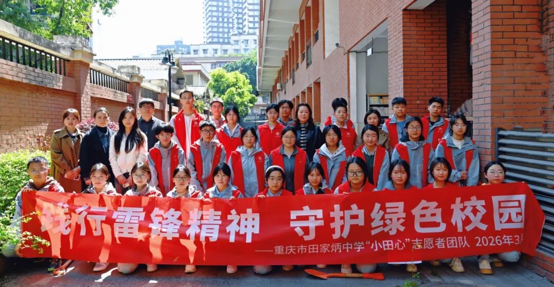 “等闲识得东风面,万紫千红总是春。”三月,在这诗意盎然的季节,重庆市田家炳中学校“小田心”志愿者团队的同学们用一场“护绿行动”,让学雷锋月的奉献精神与植树节的绿色使命相遇,给出了属于青春的答案。