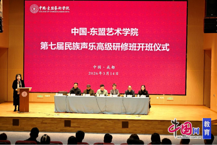 赓续中华声乐文脉,铸牢民族文化自信。为深耕民族声乐创造性转化与创新性发展,培育适配AI时代的复合型声乐精英,助力成都“三城三都”建设,3月14日,中国-东盟艺术学院第七届民族声乐高级研修班在蓉开班。本届高研班吸引了来自全国高等院校、艺术院团及文化机构等140余名学员,他们满怀热忱,共同开启研修班第一阶段为期10天的民族声乐研修学习之旅,探索民族声乐艺术的传承与创新之道。