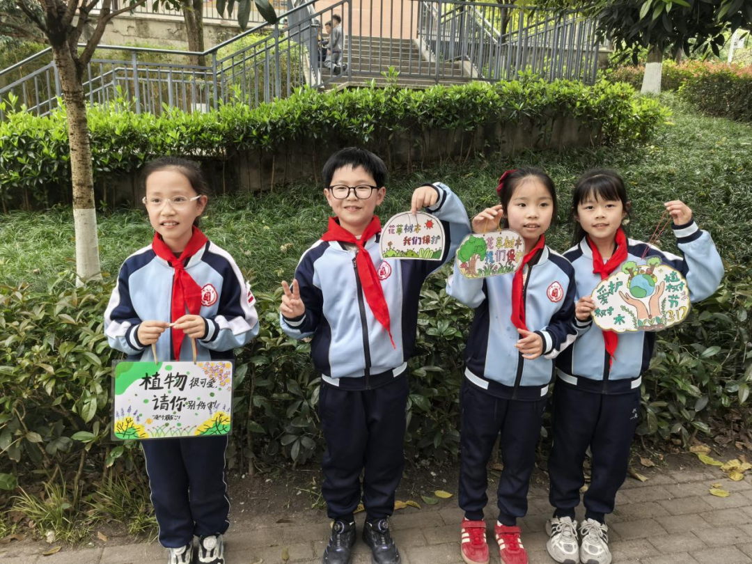 北碚区状元小学举办“我为校园添新绿”植树节活动