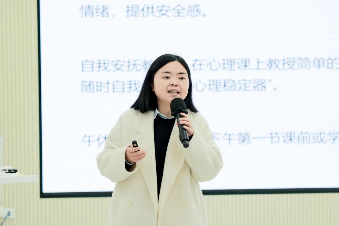 王老师分享了可操作的班级心育策略,通过《班级日报》、班级特色日营造积极氛围,让孩子找到归属感;用“口袋里的小温暖”微行动,让一次倾听、一句鼓励融入课间与日常;为有特殊需求的孩子建立动态关爱档案,让关注持续、让爱有痕。她还推荐了国家中小学智慧教育平台、12355心理援助热线等专业资源,为班主任工作提供有力支撑。