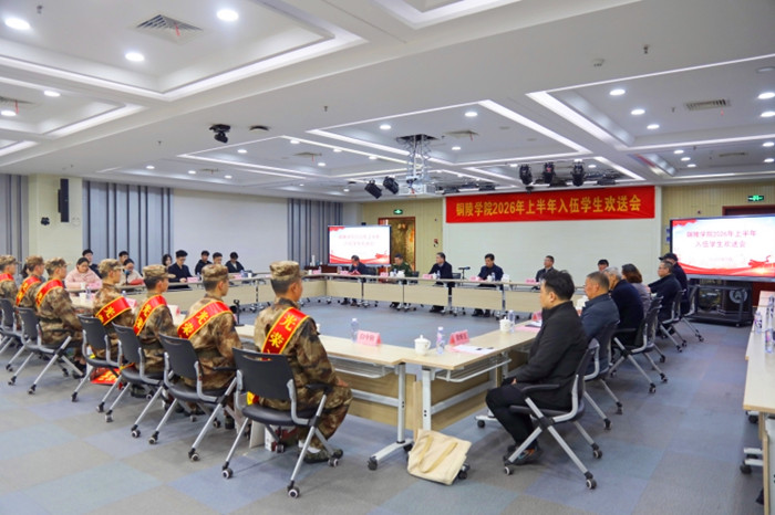 为进一步激发铜陵学院学生报效祖国、献身国防的热情,营造浓厚国防教育氛围,3月12日,铜陵学院召开会议,隆重欢送2026年上半年在铜应征入伍大学生赴军营。铜陵学院党委书记吴照明、党委副书记王保中、铜官区人民武装部政委何凯出席会议。欢送会由校学生处(人民武装部)主要负责人主持。