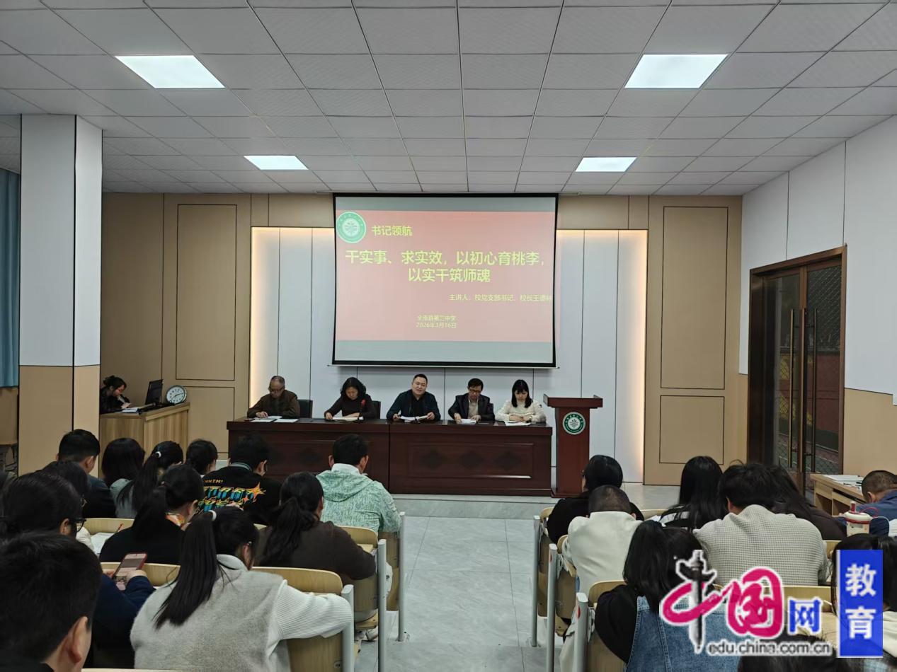 为强化教师师德修养,筑牢育人思想根基,3月16日,江西省全南县第三中学召开2025-2026学年第二学期“以初心育桃李,以实干铸师魂”3月师德师风专题学习暨师德师风警示教育大会,全体教师参会。
