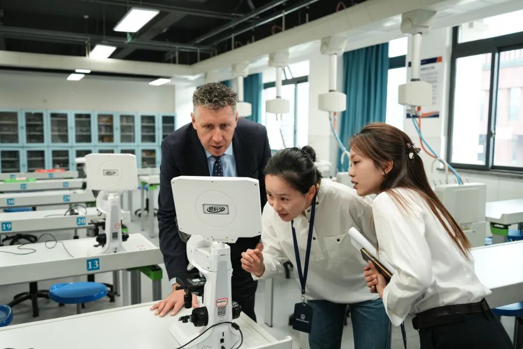 参访过程中,希思校长一行沉浸式走访校园,深度感受学校的智慧教育底蕴与多元文化氛围。在理化生智慧实验室,来宾们观摩学生科创实践成果、体验标准化实验教学,点赞学校以实验教学夯实学生创新思维与实践能力。