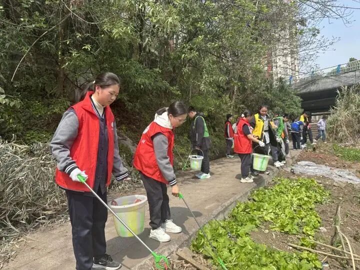 校外“河小青”护河活动将课堂延伸至田坝社区河道,打造了一堂生动的“行走的思政课”。15名学生志愿者在带队教师和社区负责人带领下,投身河道清洁与禁钓宣传。这不仅是一次劳动实践,更是一次生态文明思想的现场教学。